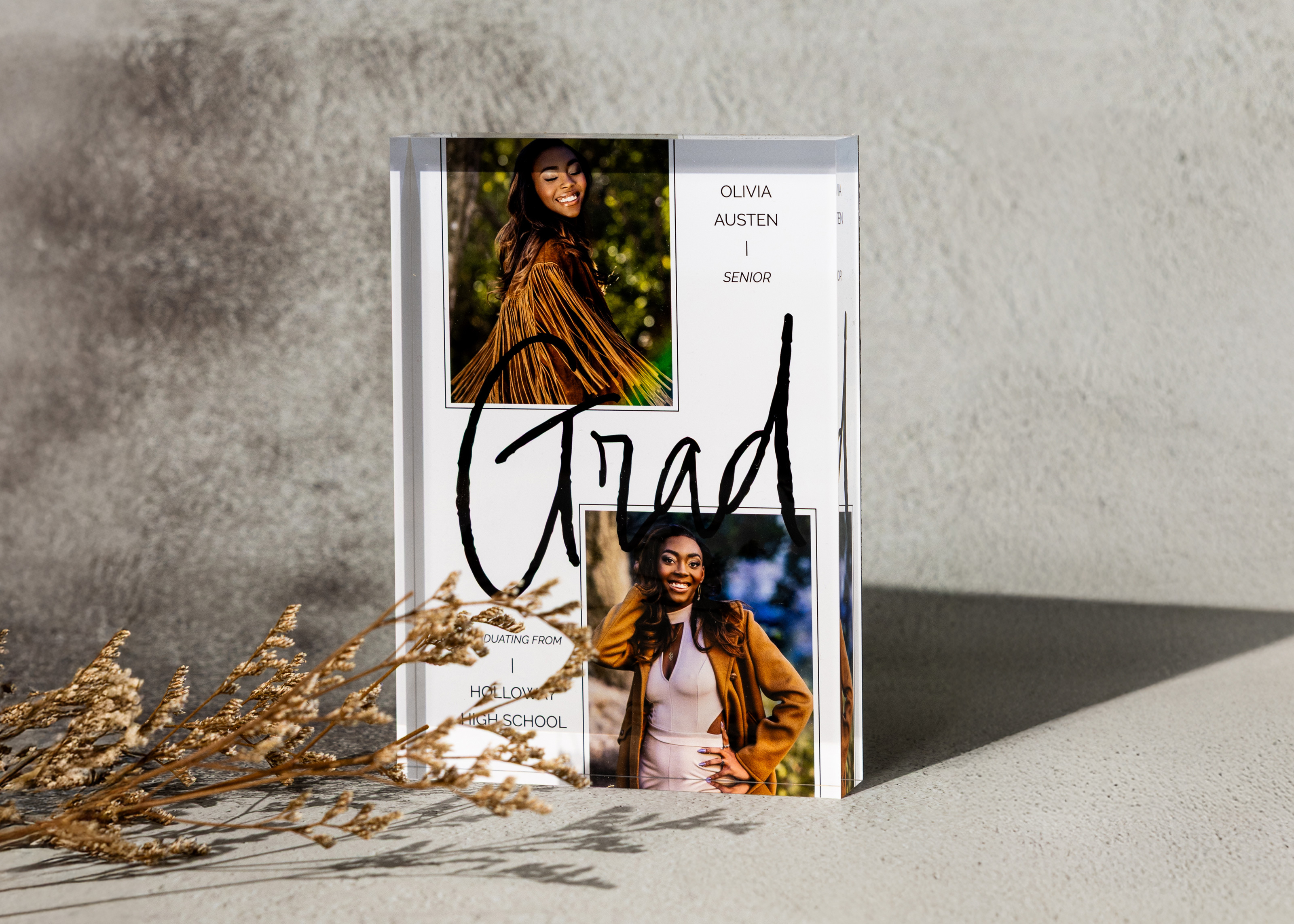 Let your moments shine through crystal clear acrylic with exceptional detail reproduction.