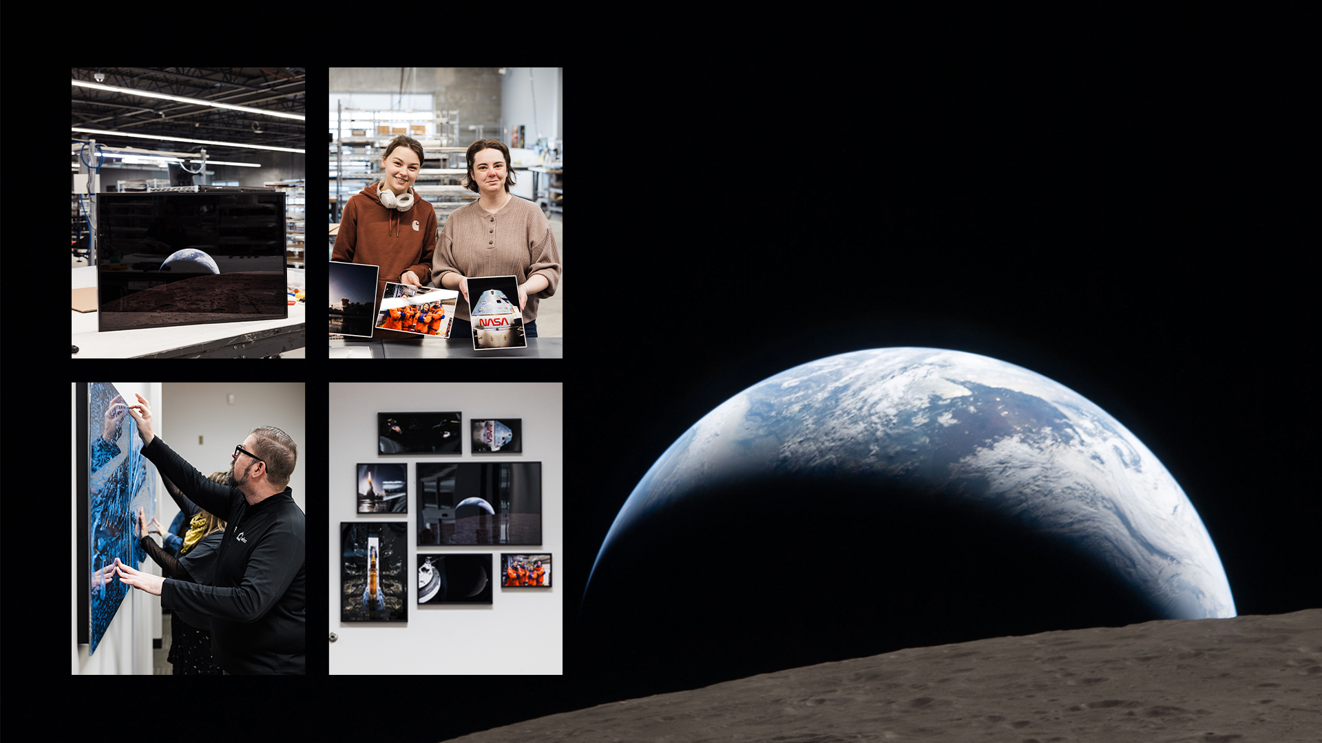 Walking through the lab now, you’re surrounded by imagery from a quarter of a million miles away featuring craters, mountain ridges on the far side of the Moon, our planet as a bright crescent setting over the lunar horizon, and the Orion spacecraft lit up by the Sun against the cosmos. It’s been a conversation starter for everyone on the team, from production to customer service. Our whole crew has been buzzing about the mission, and having the images printed and displayed on the walls around them has made the experience feel that much more real.