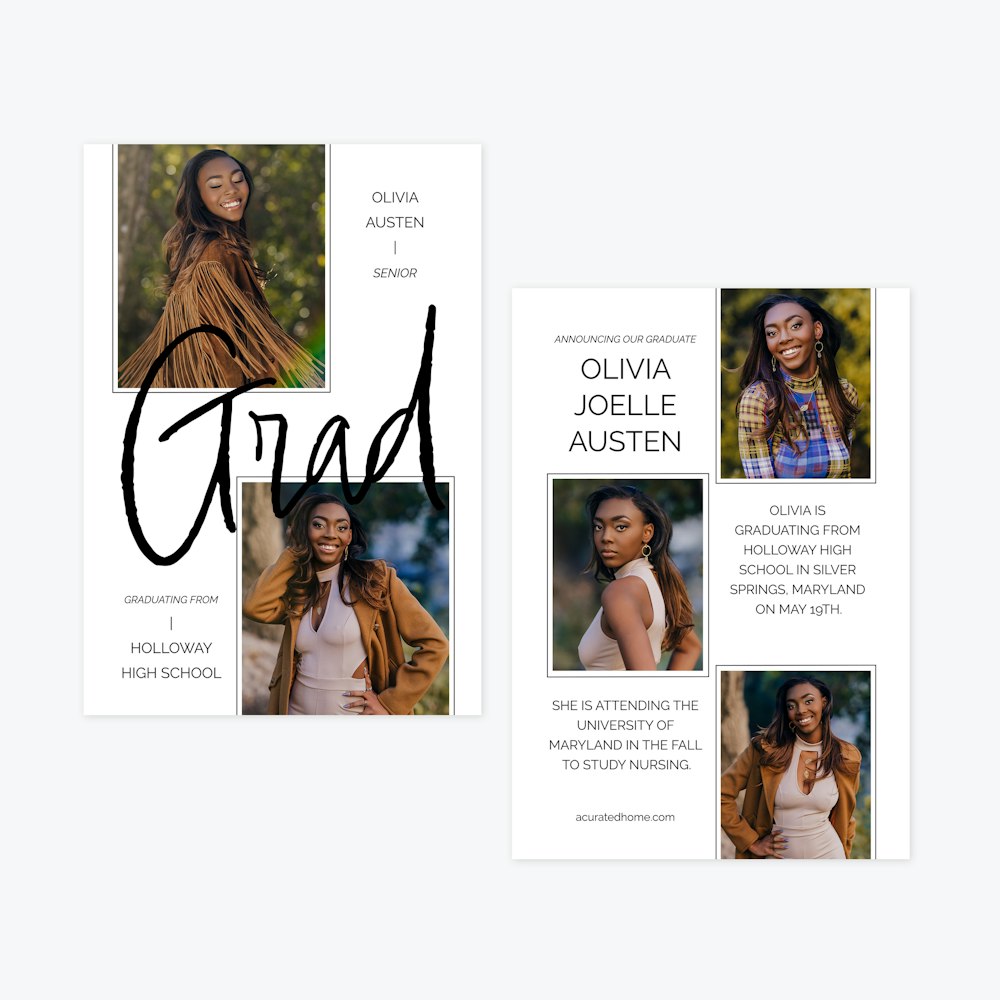 Standout Presentation — Explore 11 graduation card styles ranging from modern and bold to clean and classic.